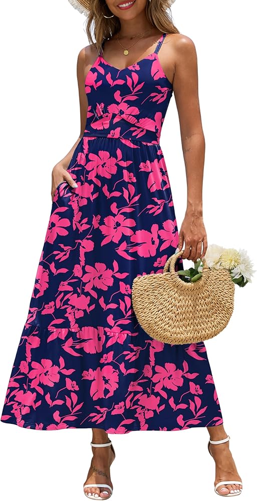 Features: Floral maxi dress comes with adjustable spaghetti strap for a perfect fit, sexy v neckline, elastic empire waist, double lined top for security, ankle length ruffle tiered long dress, a line flowy dress. Both sides have pockets to carry your lipbalm, small things or even a moblie phone