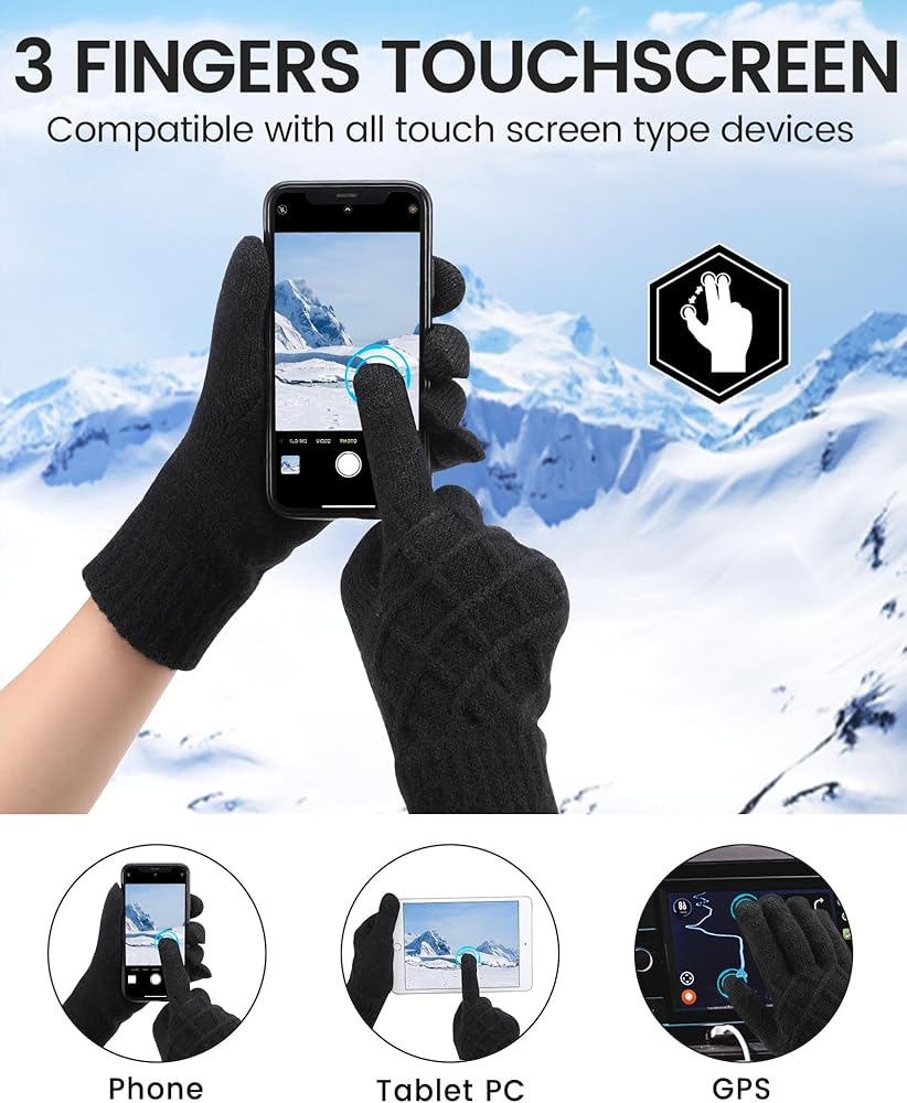 [3-Finger Touchscreen] Unique 3 fingers screen-touch design makes your hands warm when you use your smart phone and touch screen devices in winter.Please MAKE SURE to wear to the top of Each Finger,especially the 3 Touch screen Fingers,must be filled with our fingers,so that this Touch screen function will be Very Effective.