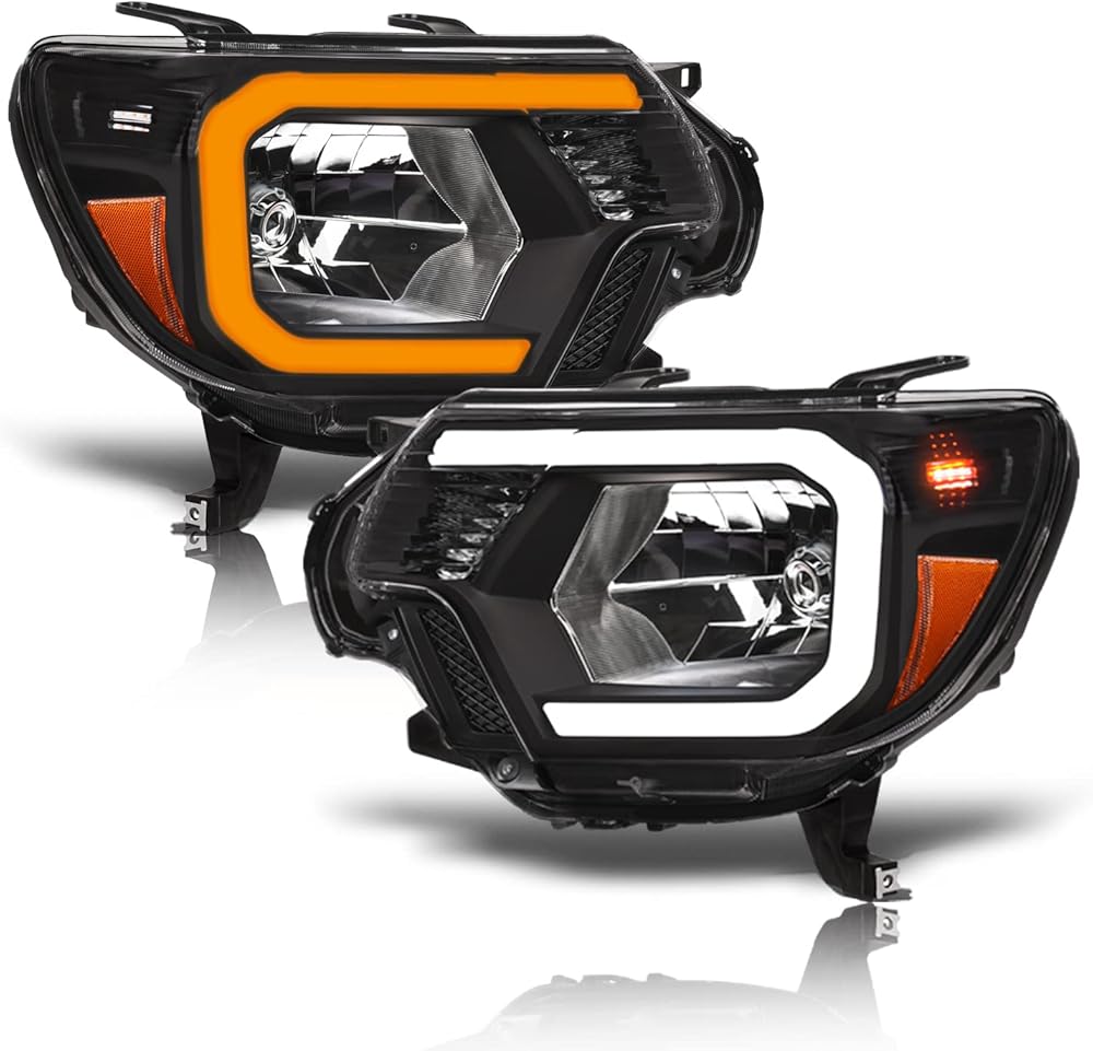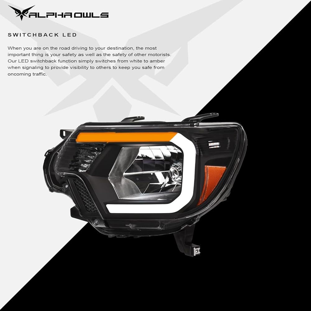 Alpha Owls 8719855 Crystal Headlights With Switchback Sequential LED Light Bar & Startup Light - Black Amber Fits 2012-2015 Toyota Tacoma