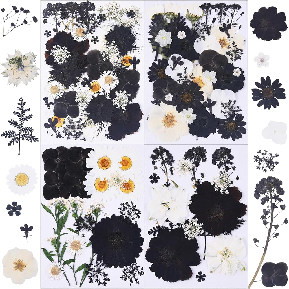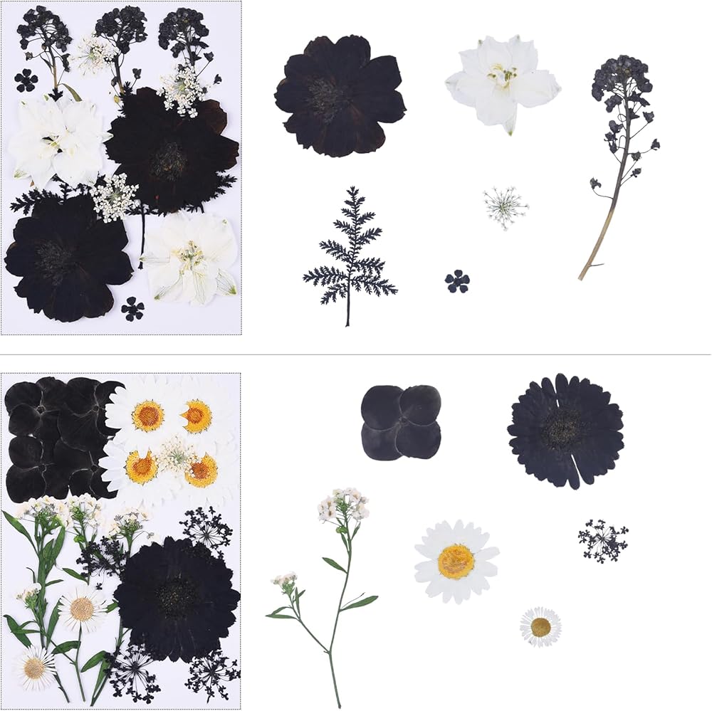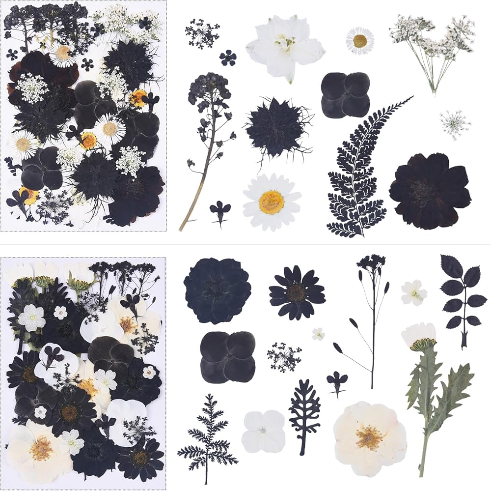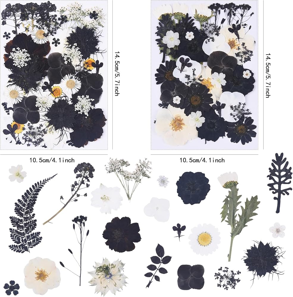 115Pcs Black Dried Pressed Flowers for Crafts,Xinxinran Dry Flowers Kit for Resin Molds,Epoxy Resin Accessories,Bookmark,Nails, Jewelry Molds,Candle Making Supplies,Soap,Frame