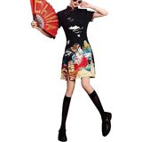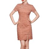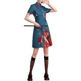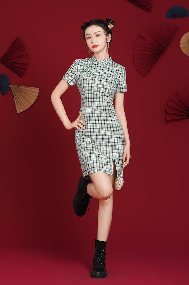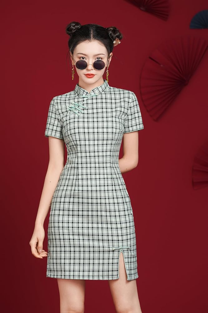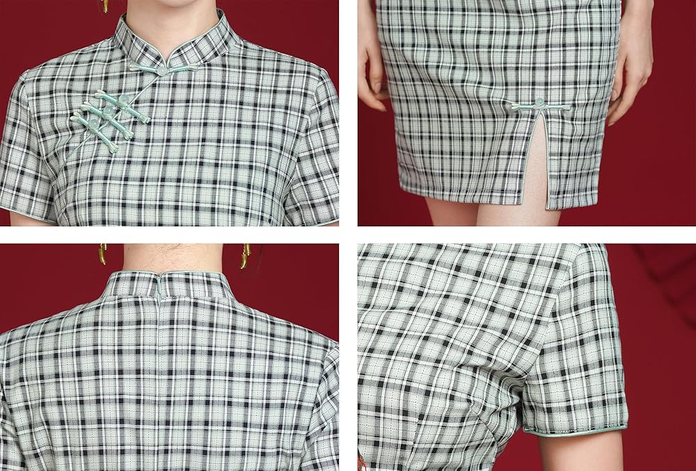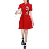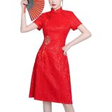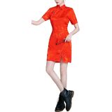 Features: Chinese cheongsam retro dress, simple design, button closure, stand-up collar, short sleeves, slit hem, slim cut, back zipper closure, retro Chinese style. The fabric is comfortable and breathable, the gorgeous appearance is generous and decent, and it easily outlines the perfect curve. Suitable for most women.
