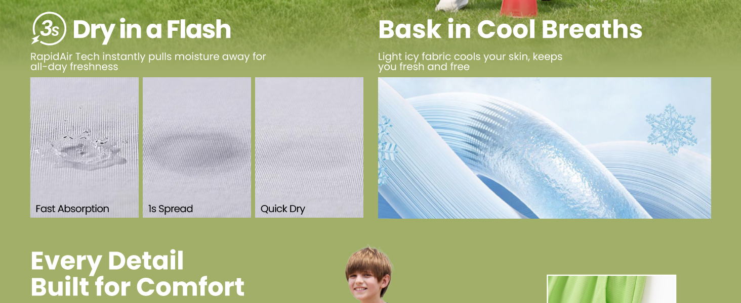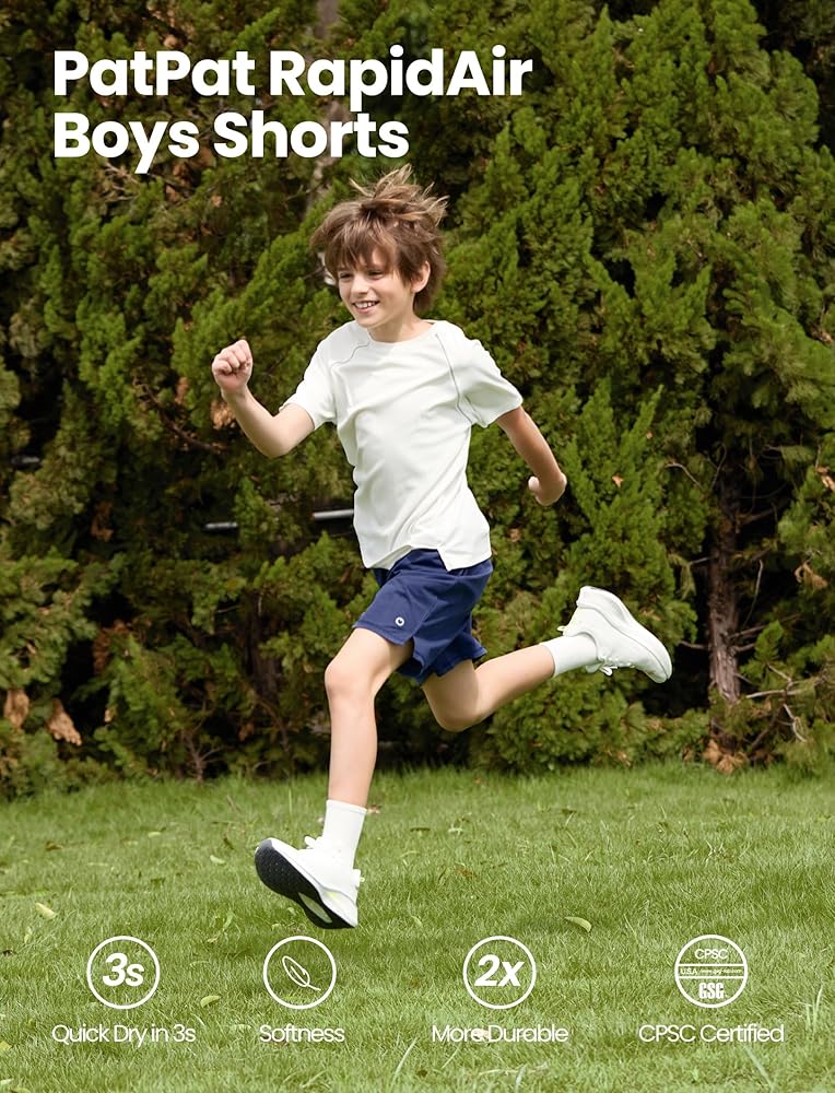 ✅3 Seconds Quick-Dry Technology: Made with 𝐏𝐚𝐭𝐏𝐚𝐭 𝐑𝐚𝐩𝐢𝐝𝐀𝐢𝐫-𝐂 𝐅𝐚𝐛𝐫𝐢𝐜, our performance shorts absorb sweat instantly and disperse it in under 3 seconds. These shorts keep kids dry and fresh even during hot weather, training, or match days.