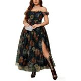 Experience ultimate elegance with plus size floral dress for women, perfect for any women dresses occasion. This black dress for women features intricate hand-embroidered flowers that make every women's cocktail dresses look unique.