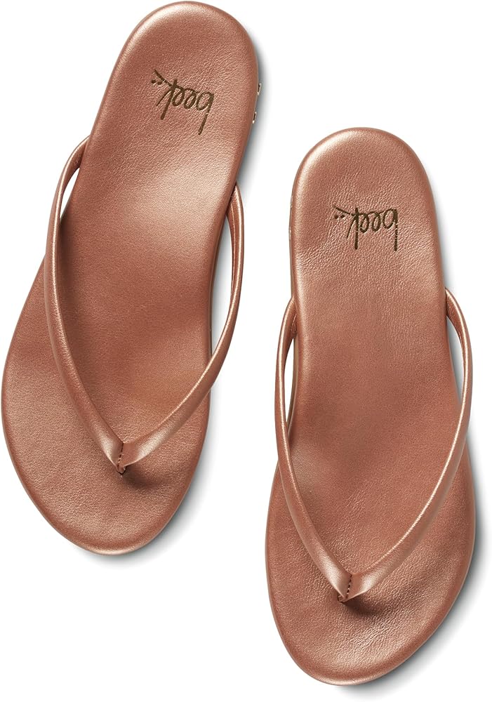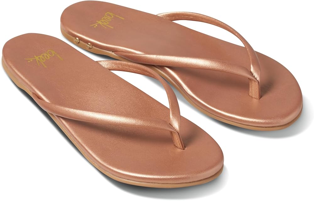 The womens Sunbeam leather flip-flop sandal is handmade with the highest quality, softest, most pliable leather we could find. The upper features two uber-comfortable leather-wrapped thin foam straps. The memory foam padded insole is leather wrapped, and the outsole is rubber for easy grip for pool time, boating, beach, yoga classes, and everyday wear. These sandals feature our signature molded arch for ultimate comfort and support.