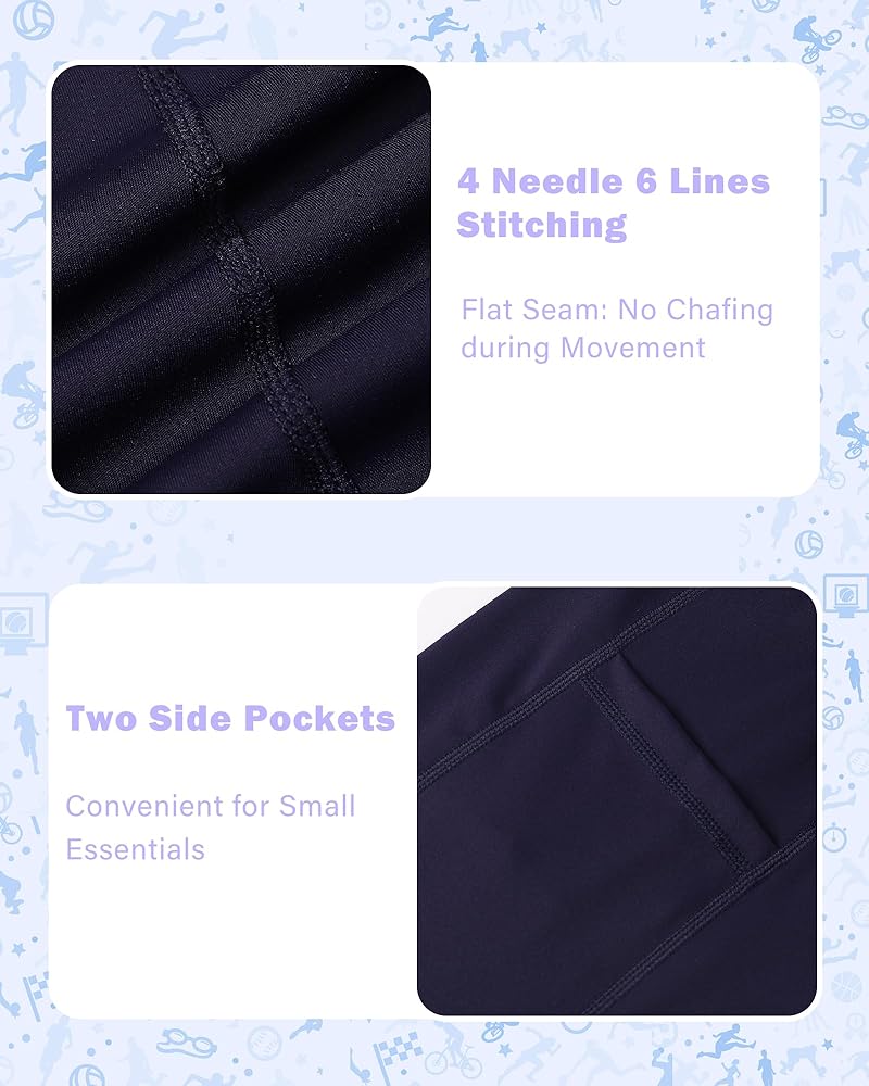 2 Pockets: The girls athletic shorts have two side pockets which are spacious enough to store your keys, and other items, allowing you to keep your hands free and worry-free while participating in sports