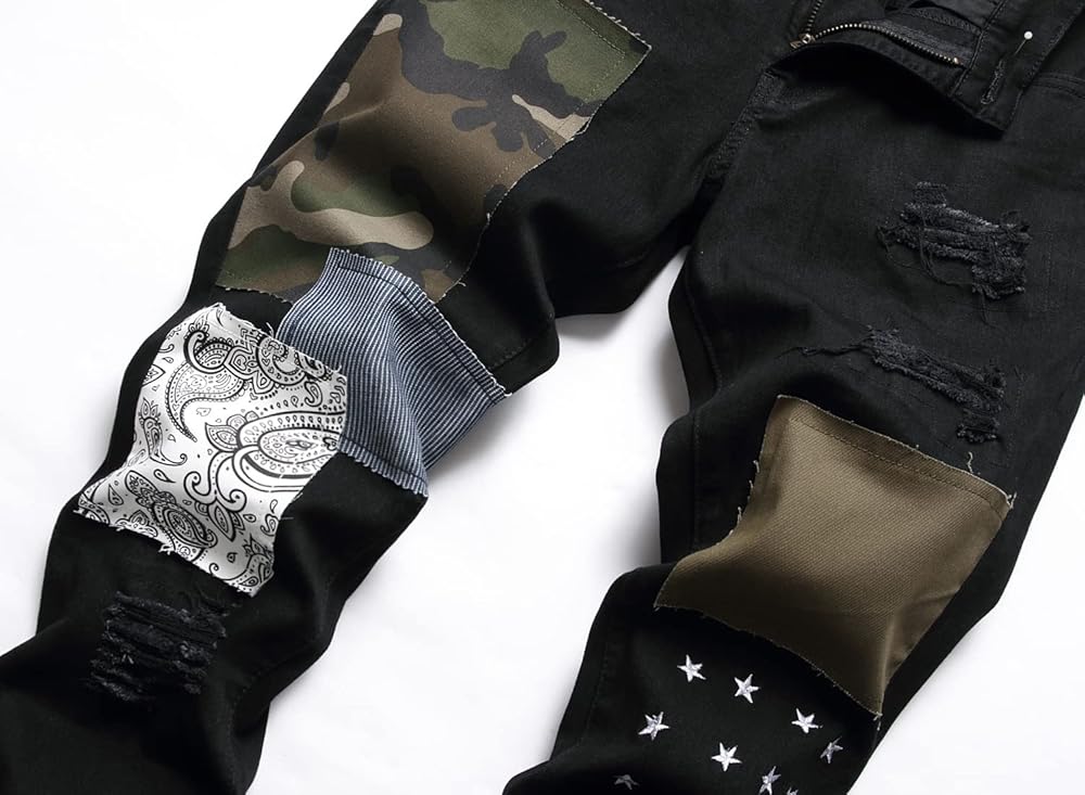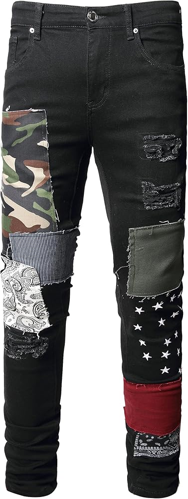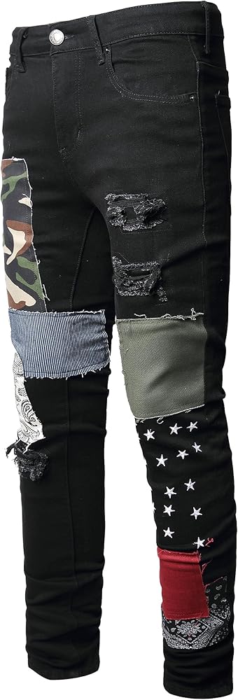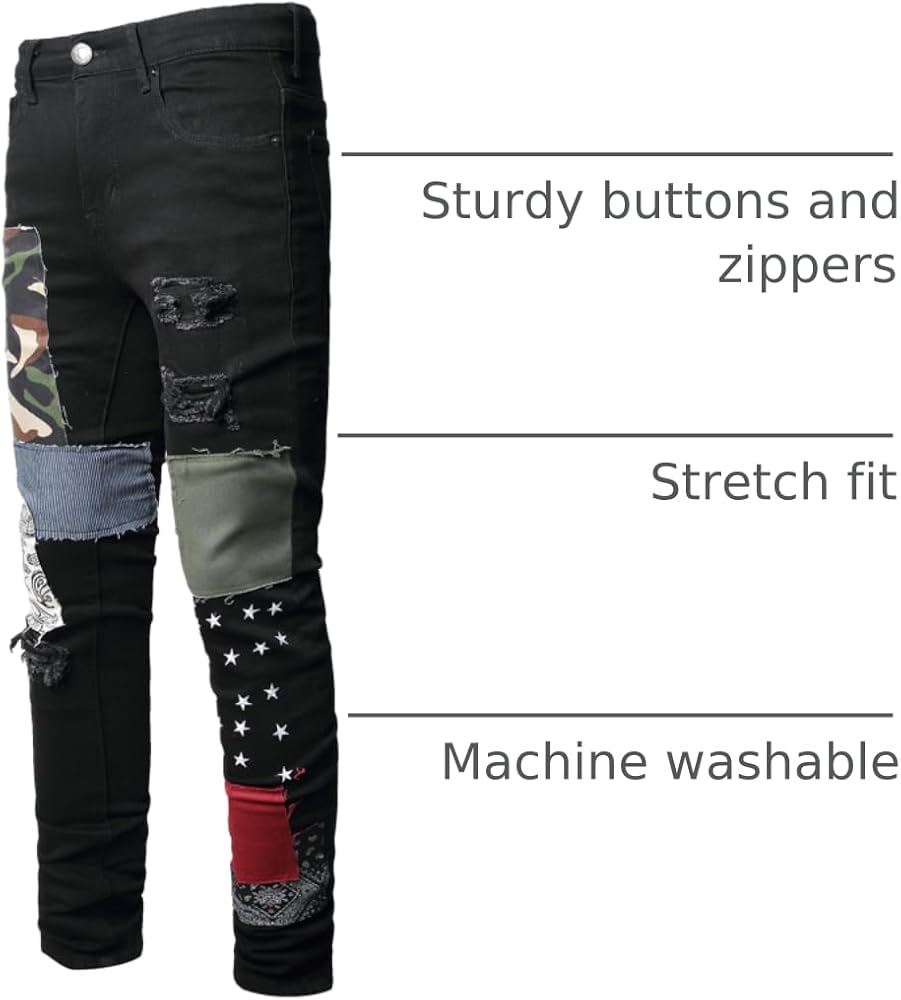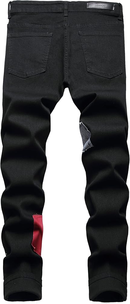 ABSECAI Men's Ripped Jeans Slim Fit Skinny Stretch Jeans Pant (36, Black2 Patch)