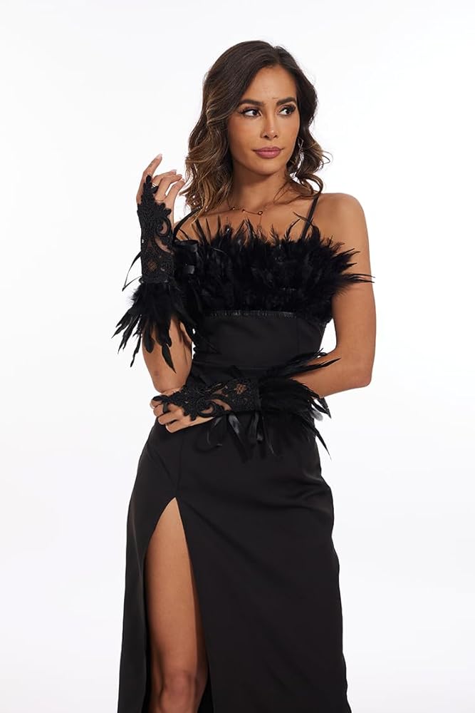 Quality feather: Livresse feather gloves is 100% handmade with colored cocktails, each feather is carefully selected, all accessories are handmade by an experienced professional team