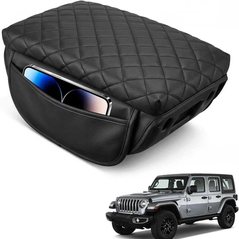 【Upgrade Design】Center console cover with leather side pockets, extra storage space, convenient to place items, such as cell phones, car keys, card, etc