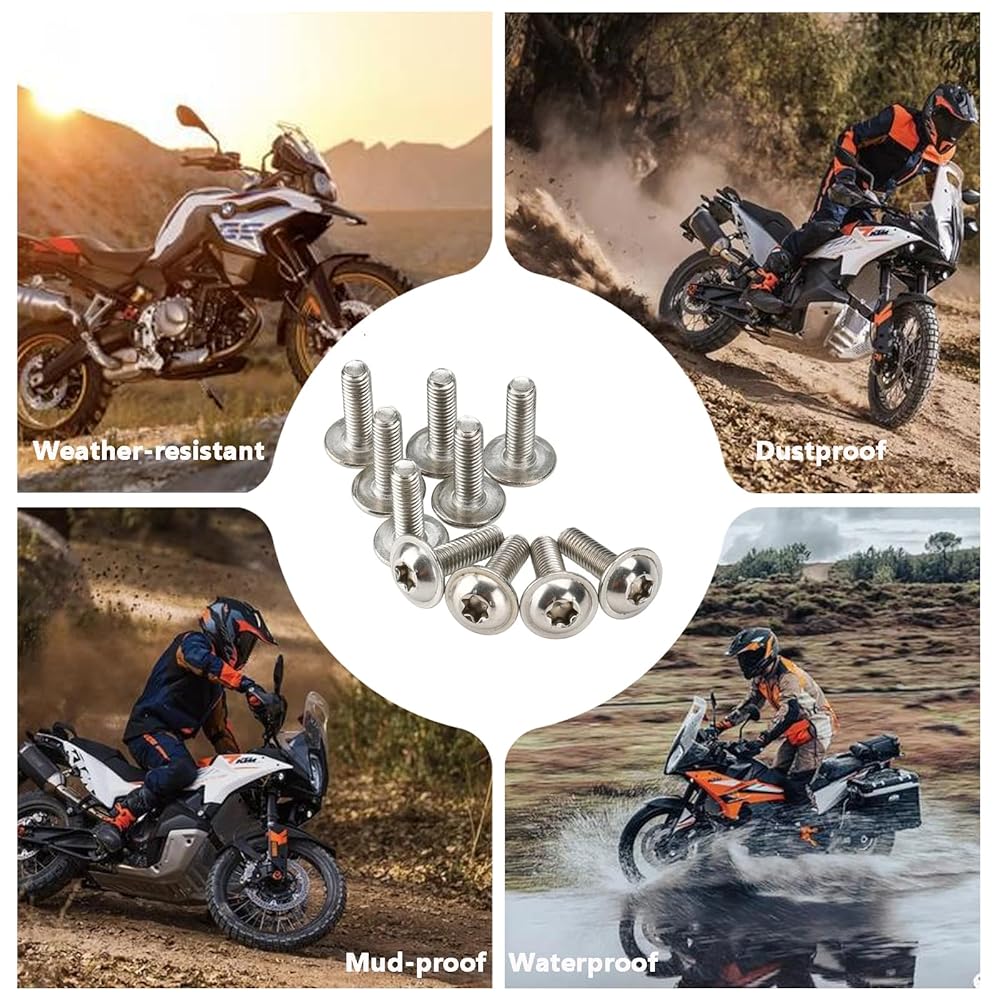 This universal 10pcs -pack of hex socket Flanged button head screws is specifically designed to secure fairings on various For BMW models including the S1000R S1000RR S1000XR R1200GS LC ADV R1250GS R1200RT R1250 F750GS F850GS F900R series bikes