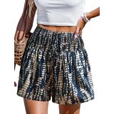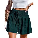 【Casual Shorts】: Features a smocked-waisted with a decorative drawstring adds a stylish touch, and a wide leg silhouette for a comfortable fit; The trendy cover-up shorts that flatters various body types
