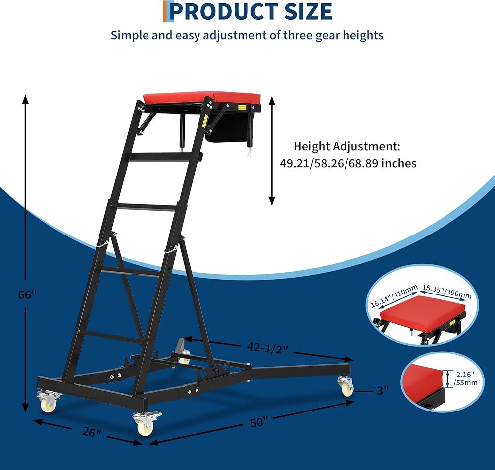 Top Automotive Creeper, 400 LBS Capacity Adjustable Car Creeper (49.2 in-68.9 in) with Locking Wheels & Tool Pouch, High Top Mechanic Creeper for Trucks, Garage Repair