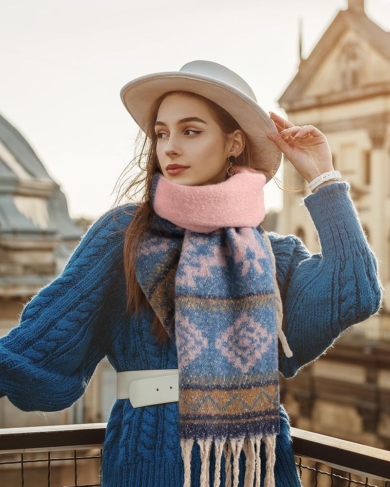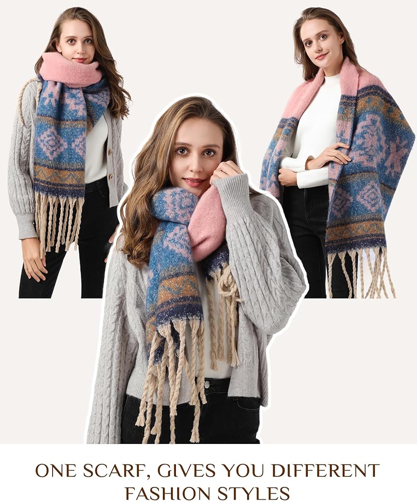 🎁 MATERIAL AND SIZE - Scarves are made of high quality matetial, cashmere-like Acrylic, very soft and comfortable, reversible, tassel trimed. Oversized blanket scarf measures longth 55 in, it is a big square scarf, which can be folded in a triangle and wrapped around your neck or wrap the shawl freely around any outfit and it will keep you warm all day long.