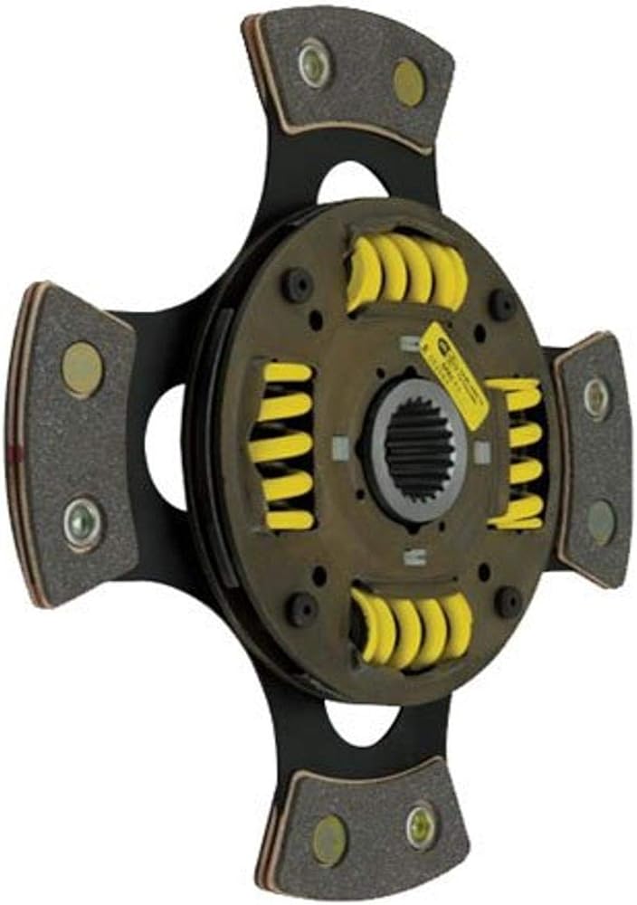 ACT's 4-pad, spring-centered race discs are made with high quality, ceramic friction materials that produce 28 percent more friction and torque capacity over organic materials. The spring-center construction properly dampens torsional vibrations for quieter operation and resists failure even under harsh conditions. ACT spring retainers utilize wraparound spring windows and thicker retainer stampings to provide spring support, reduce stress concentrations and increase strength and reliability. The heavy duty torsional dampening springs are stronger in most cases than standard springs and are provided in the best sizes and spring rates to suit the application. With the 4-pad, spring-centered race disc engagement is harsher but shifting is faster. The 4-pad spring-centered race disc features a heat-treated spring steel drive plate and is well-suited for the smaller disc sizes in smaller engines. All ACT race discs are certified as meeting SFI Specification 1.1 and are legal in all racing organizations that require SFI certification.