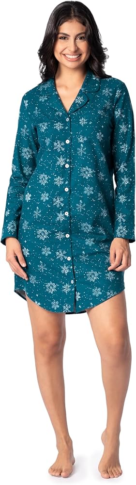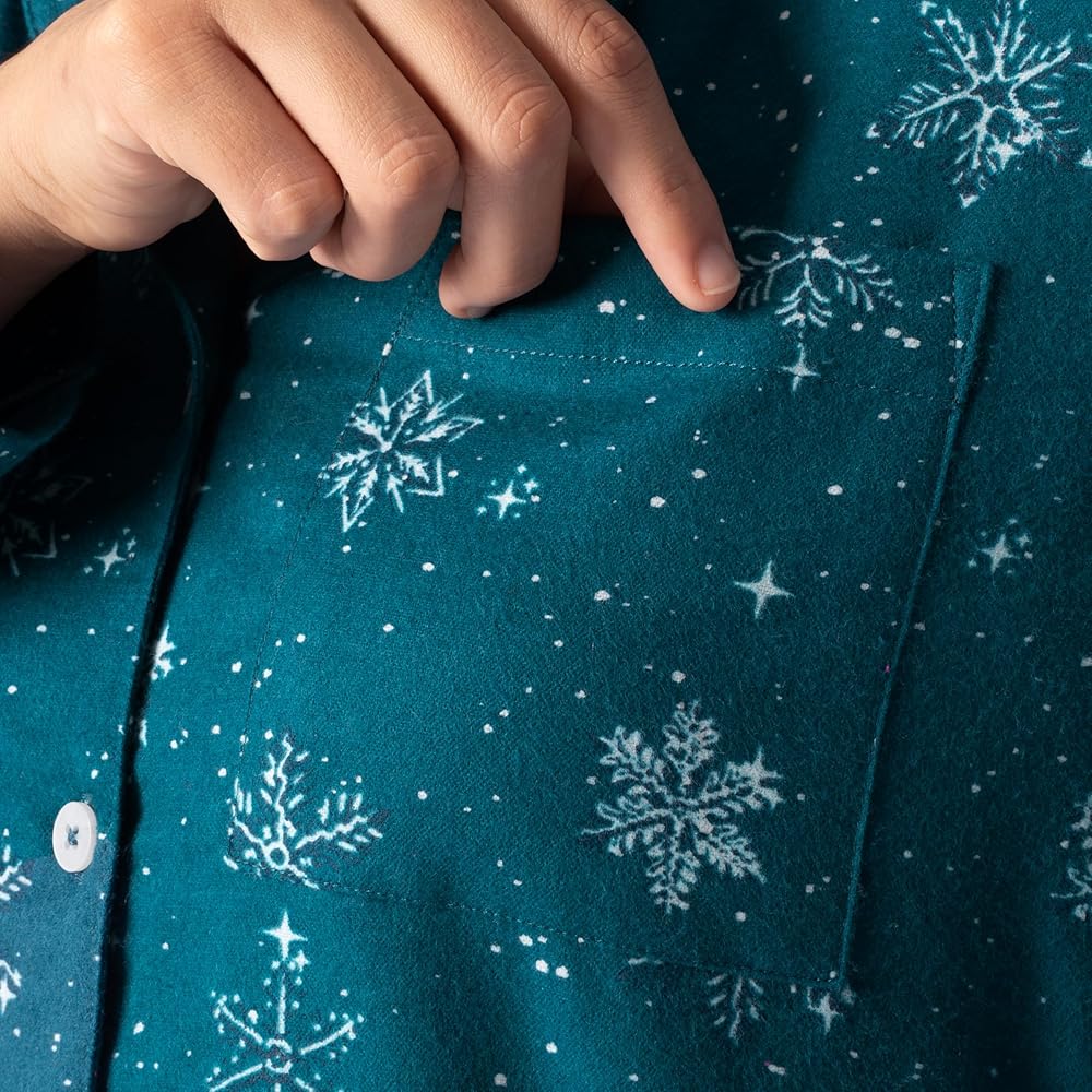 - Classic sleep shirt collar with left chest pocket and button-down opening
