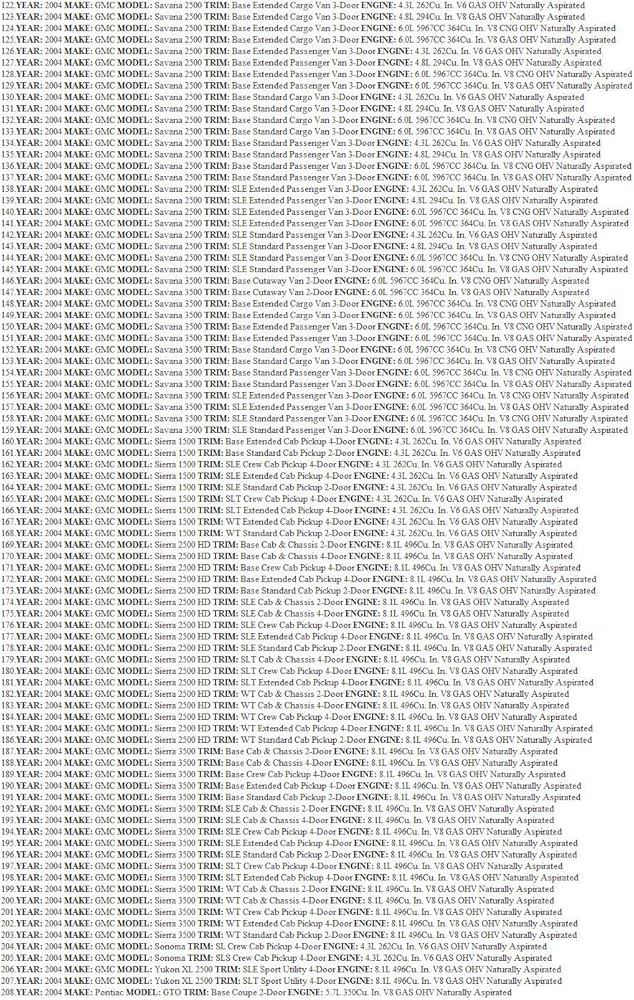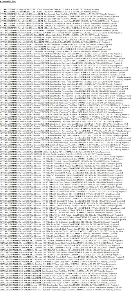 This E.C.M. fits the following vehicles: 2004 4.3/4.8/5.3/6.0L Chevrolet Express (1500, 2500, 3500).
