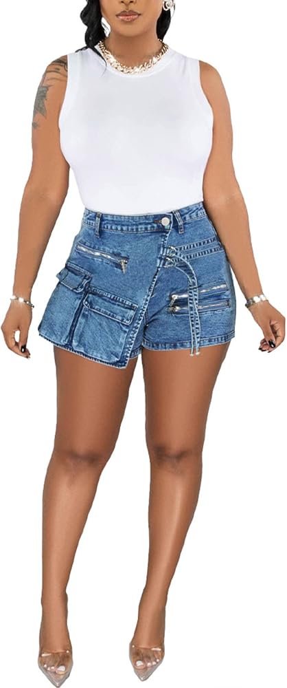 Occasion: Womens shorts jean cargo Asymmetric hem mini skorts with pockets suitable for club, beach,party, nightclub, night out, shopping, party, camping, daily wear,street and other occasions!