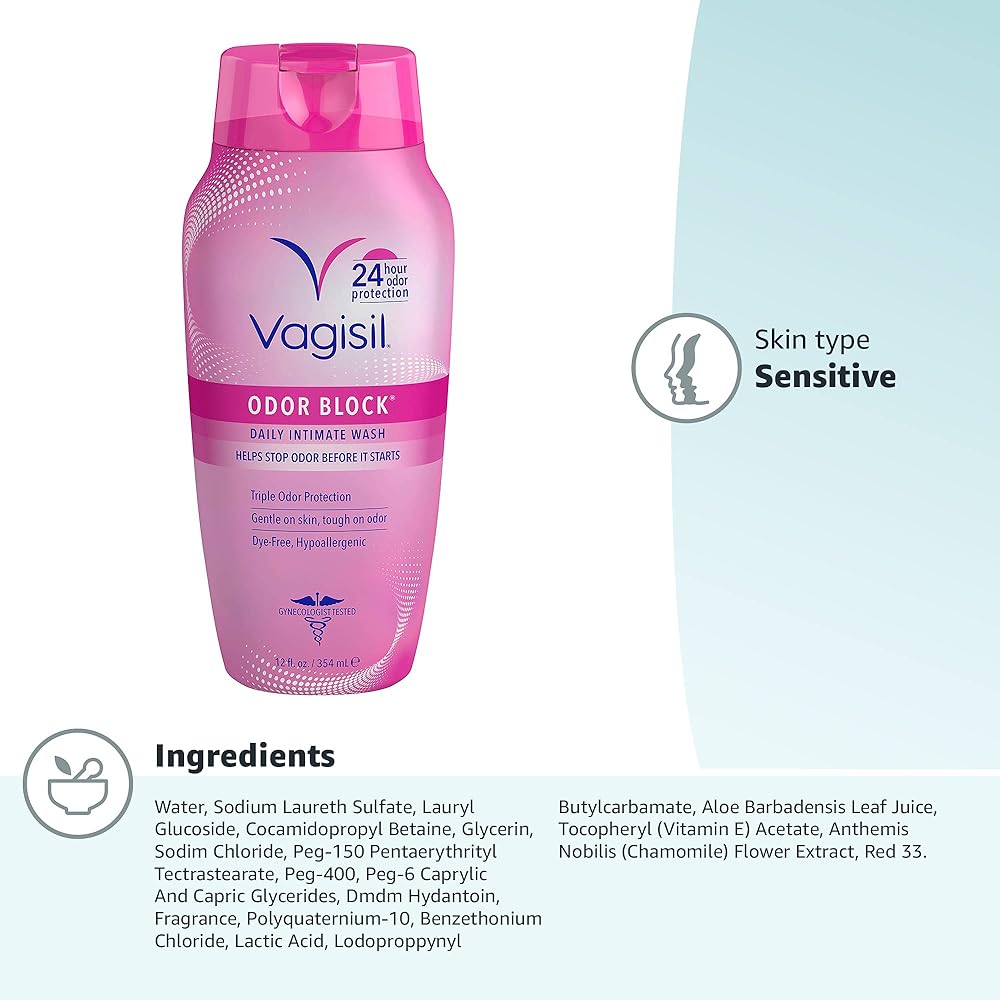 - Includes (2) 16.9 oz bottle with pump of Vagisil Odor Block daily intimate vaginal wash
