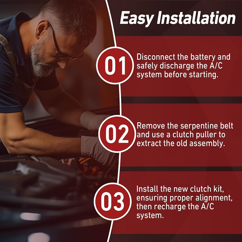 Safety and Performance: The A/C compressor clutch repair kit features a copper core with a zinc anti-aging treatment, making it wear-resistant and extending its service life. High-quality rolling steel balls are used for a quiet and comfortable operation, addressing issues of abnormal compressor noise.