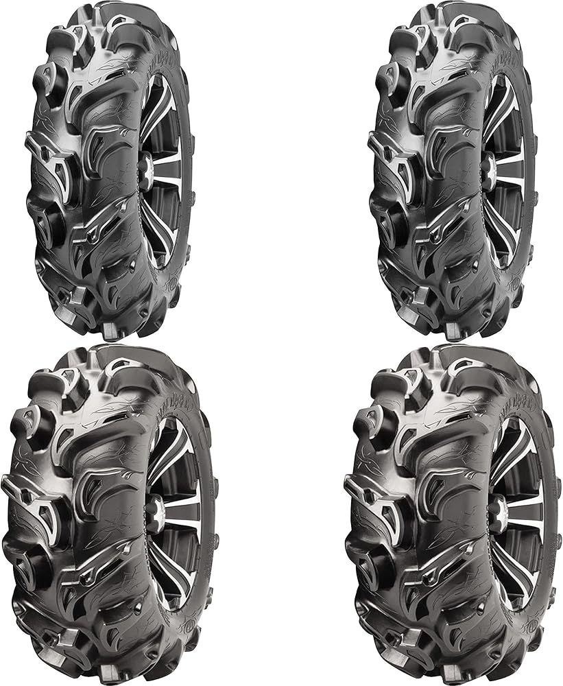 This younger brother of the original ITP Mayhem uses all the tricks of its sibling, but has added some wicked moves of its own. The taller, brawnier Mega Mayhem features an even more aggressive 1.5-inch-deep lug for ferocious bite. Lightweight 6-ply carcass delivers exceptional acceleration and braking characteristics as well as balanced cornering traits.This Kit Includes:(2) ITP Mega Mayhem (6ply) ATV Tire [27x9-12] (2) ITP Mega Mayhem (6ply) ATV Tire [27x11-12]