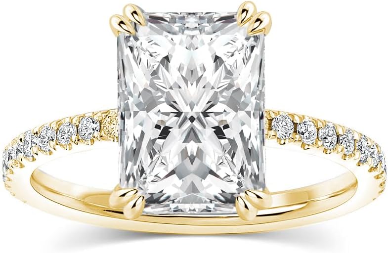 【💍Impressive 4.5 Carat Radiant Cut Center Stone】Showcasing a brilliant radiant cut lab-created moissanite, this centerpiece offers exceptional fire and clarity, rivaling diamonds with its near-flawless facets and bold brilliance—crafted to turn heads and light up every room.