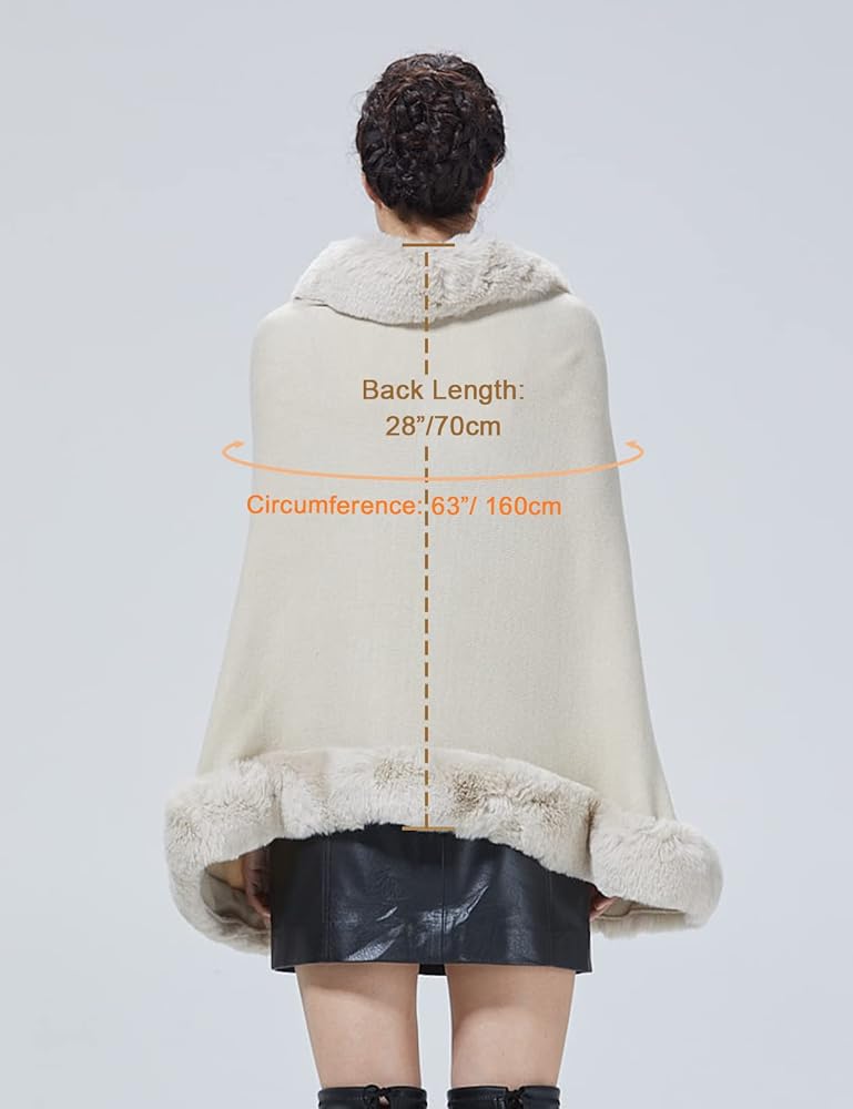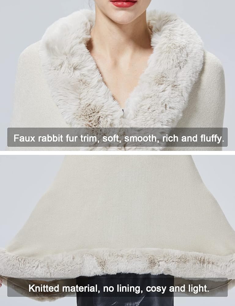 ▼【Warm & Soft】:Faux Fur shawl is made of high-density knitted fabric with fur Trim. It is elastic and warm. The synthetic skin inside is very soft and good for the skin.