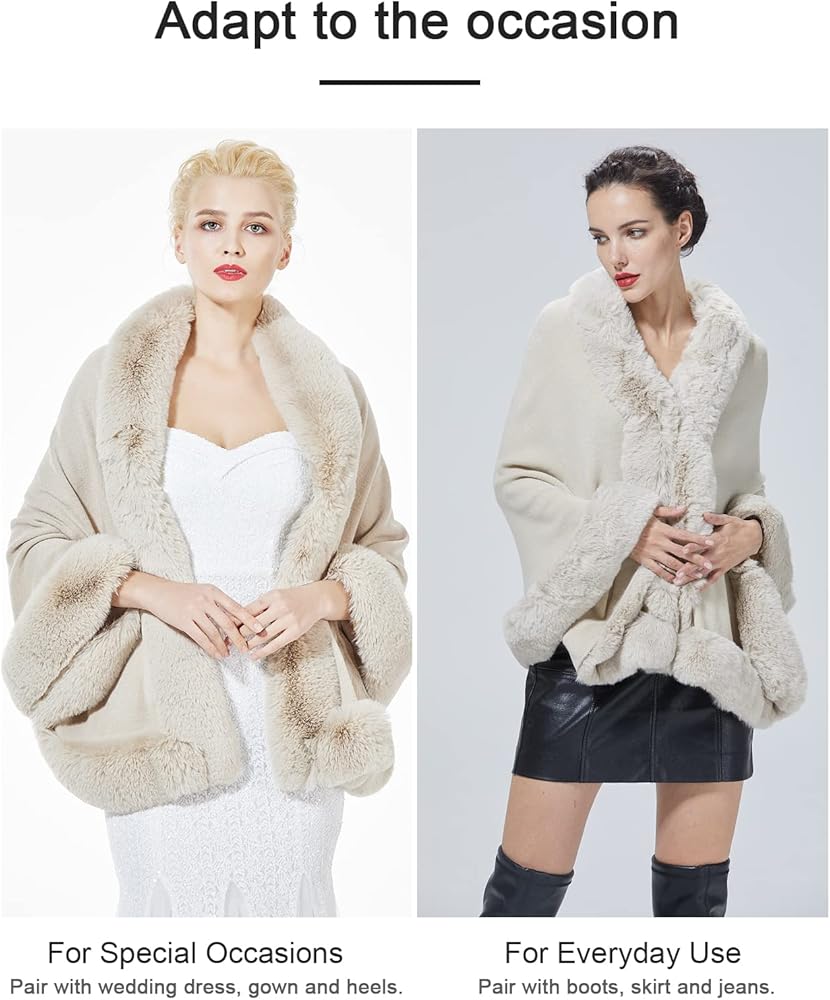 ▼【Occasions】:Women's fur cape poncho is the ideal partner for wedding dress, bridesmaid dress, evening dress and party dress. You can use this shawl for winter weddings, dates, carnivals, formal parties, opera-themed parties, Christmas parties and Halloween parties, or for the stage and vintage photography of any medieval/western party.