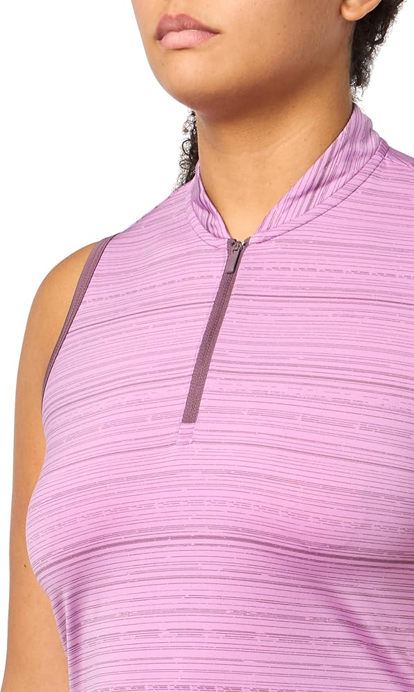 Any day. Any course. You can count on this women's adidas golf polo shirt. Stretch-knit fabric and a sleeveless build give an unrestricted feel so you can swing freely. Subtle striping and a quarter zip with a stand-up collar give it a clean, fresh look.