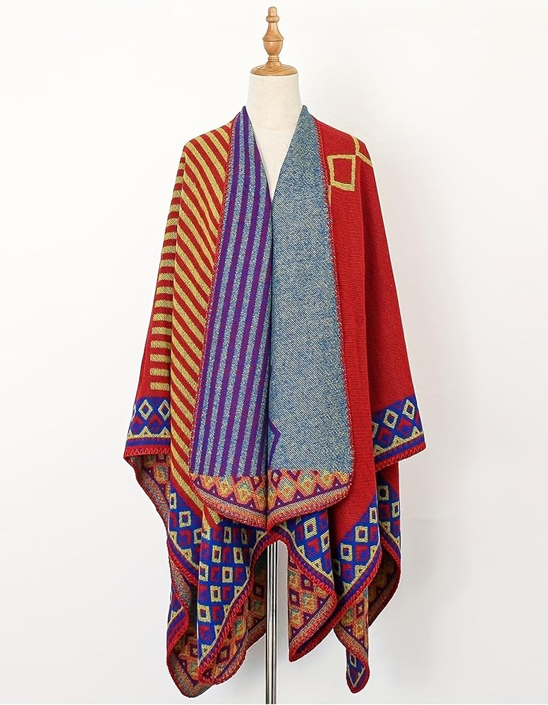 Double Sided Reversible: The both sides color of the ponchos for women are different and completely reversible.You can choose to display the dark side or the light color side, or you can play with your folding methods or twist to display both complimentary color patterns.