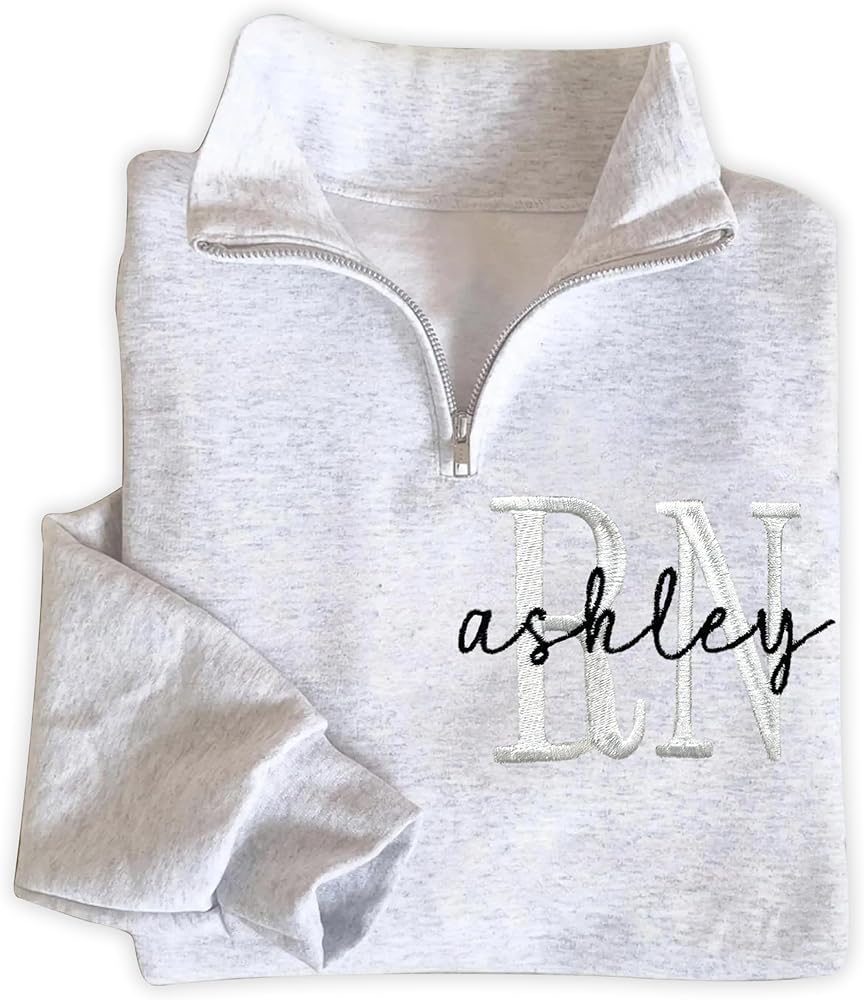 Personalized Nurse Quarter Zip Sweatshirt – Custom embroidered with name and credentials. Perfect for RN, BSN, ICU, OR, Pre-Op, and other nursing roles.
