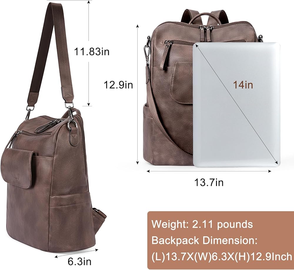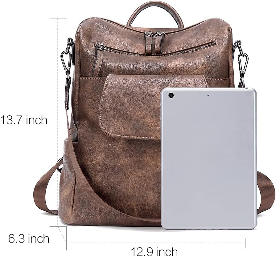 Large Capacity: (L) 12.99" x (W) 6.29" x (H) 13.77", Weight: 2.11 lb; removable strap is 11.83", lightweight and comfortable for you to carry. You can use it as everyday backpack or leather backpack purse.
