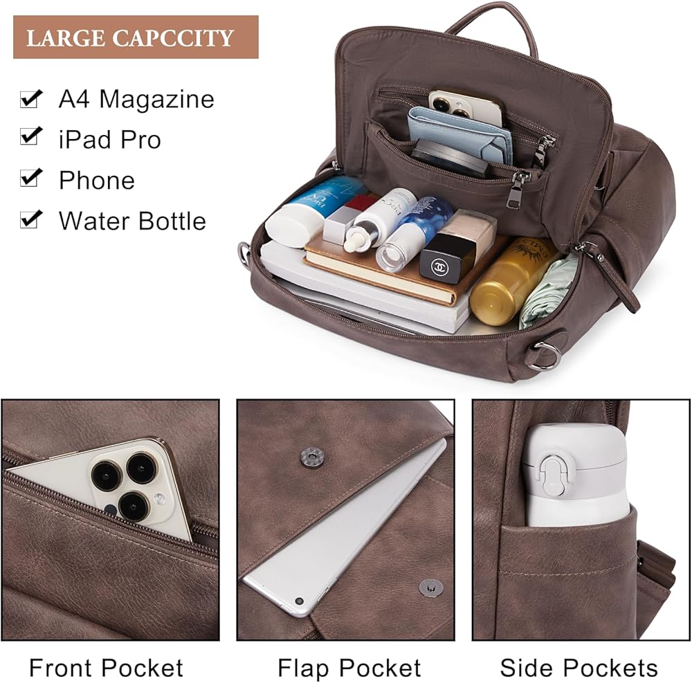 Durable Material: Made of high-quality PU leather with reinforced stitching, gun-tone hardware, soft fabric lining, and durable canvas shoulder straps, double zip design for convenience. Buckle front pocket design as an eye-contacting element, gives you confidence with this womens backpack purse.