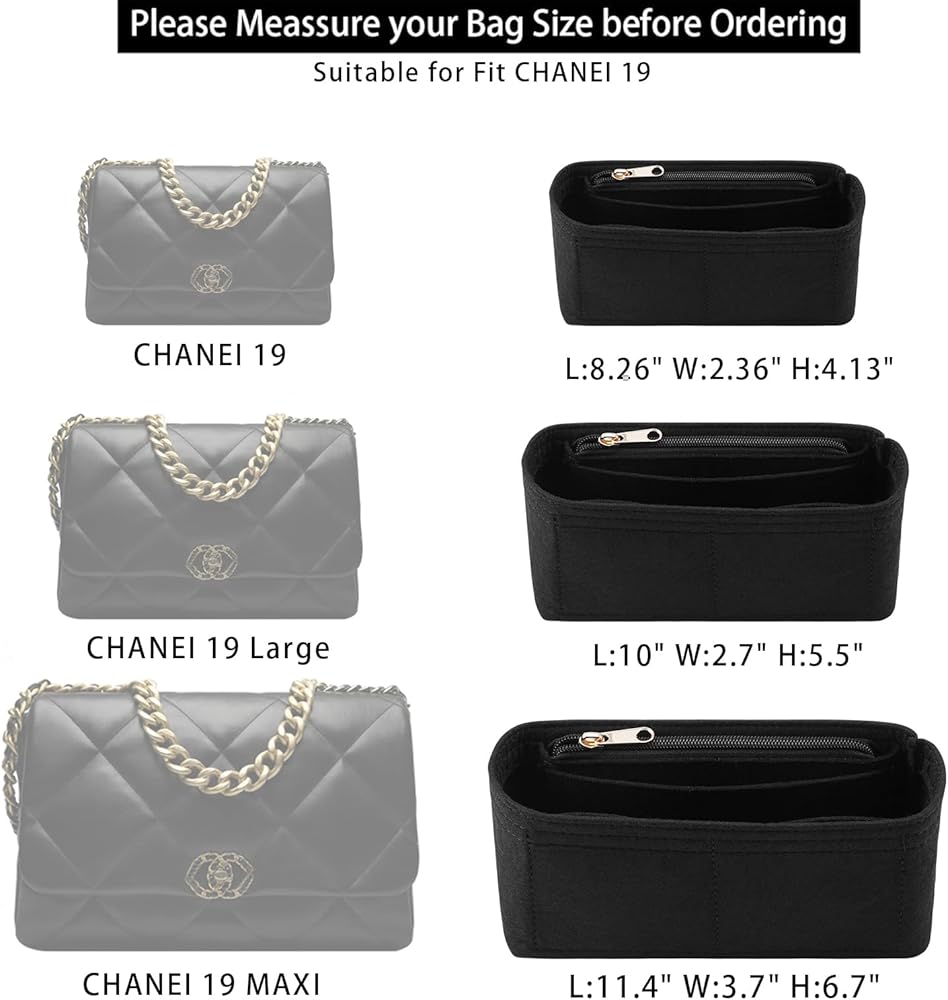 💞Size of the felt purse organizer insert - Small: 8.26" (L)*2.36" (W)*4.13" (H) , suitable for 19 Flap, or similar size Tote Handbag. Please comfirm your bag size before purchasing again, thanks.
