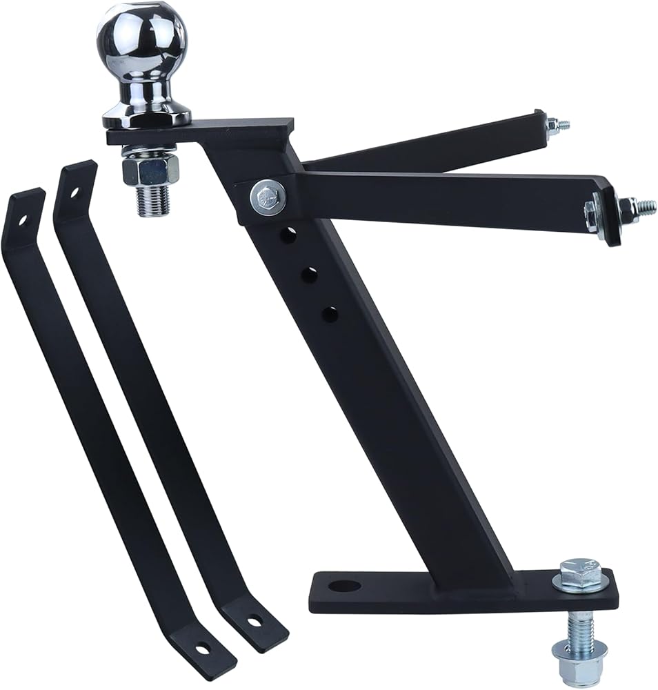 The Material of Towing Hitch: The Lawn Mower Tractor Towing Hitch is Made of Durable Solid Lron. Significantly enhancing durability. The surface is coated with high-quality black powder, providing excellent rust resistance and waterproof.