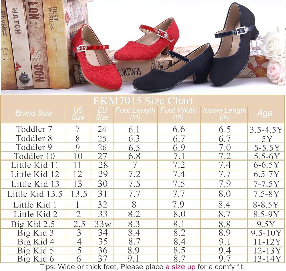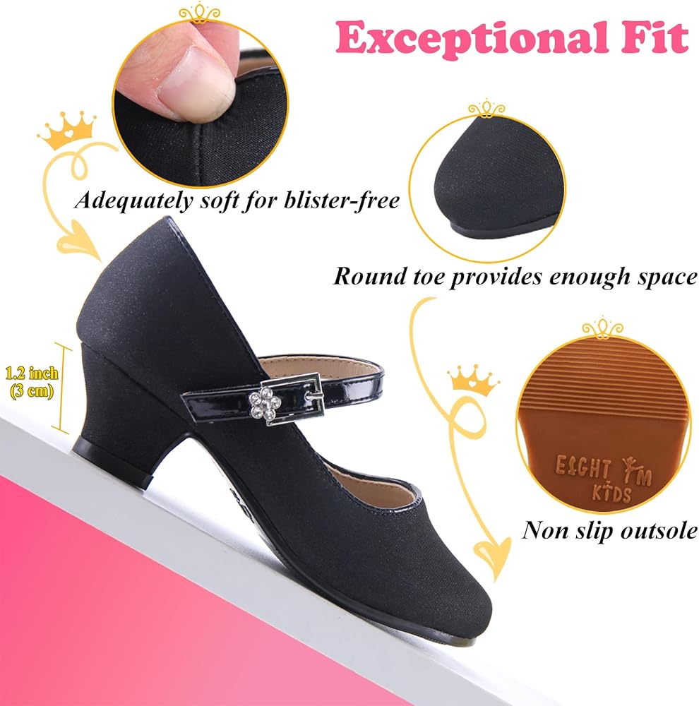EIGHT KM Toddler Shoes - High Heels Kid Shoes - Multi Sizes & Colors for Ages 3-13 Years - Mary Jane Shoes for Girls Wide Fit Little Girl Dress Shoes - Party Wedding Shoes - Princess Baby Girl Shoes