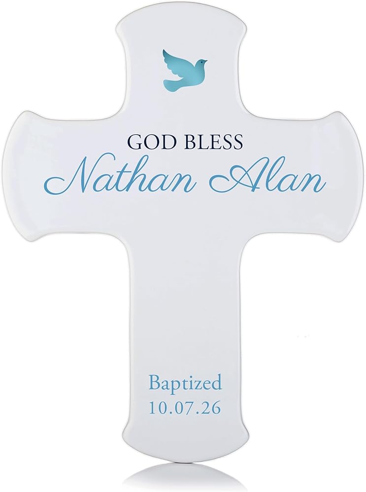 Personalized, custom wall cross for baby boys or any child celebrating their baptism: made to last, our wall crosses make the perfect baptism gifts for boys