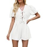 Charming Bow Design: This womens cute rompers feature three decorative bows down the front, adding a sweet and feminine touch. The V - neckline enhances the elegant vibe, making it perfect for various occasions.