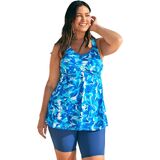 This longer-length tankini mixes sporty design with feminine flair. A ruched V-neckline and empire waist flatter your curves, while a macrame racerback design and shirring smartly blend elegance and support. Built-in power-mesh bra with sewn-in foam cups. Solutions: Bust Support and UPF 50 Sun Protection29" lengthNylon/spandexHand wash with mild soap. Roll suit in a towel and squeeze out excess water. Dry flat. Avoid washers and dryers.Imported Close Back Details “UPF” stands for Ultraviolet Protection Factor and it measures the Ultraviolet radiation or “UV” protection from the sun provided by a fabric. (
