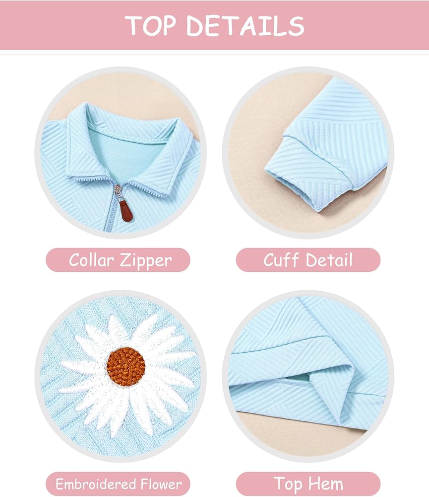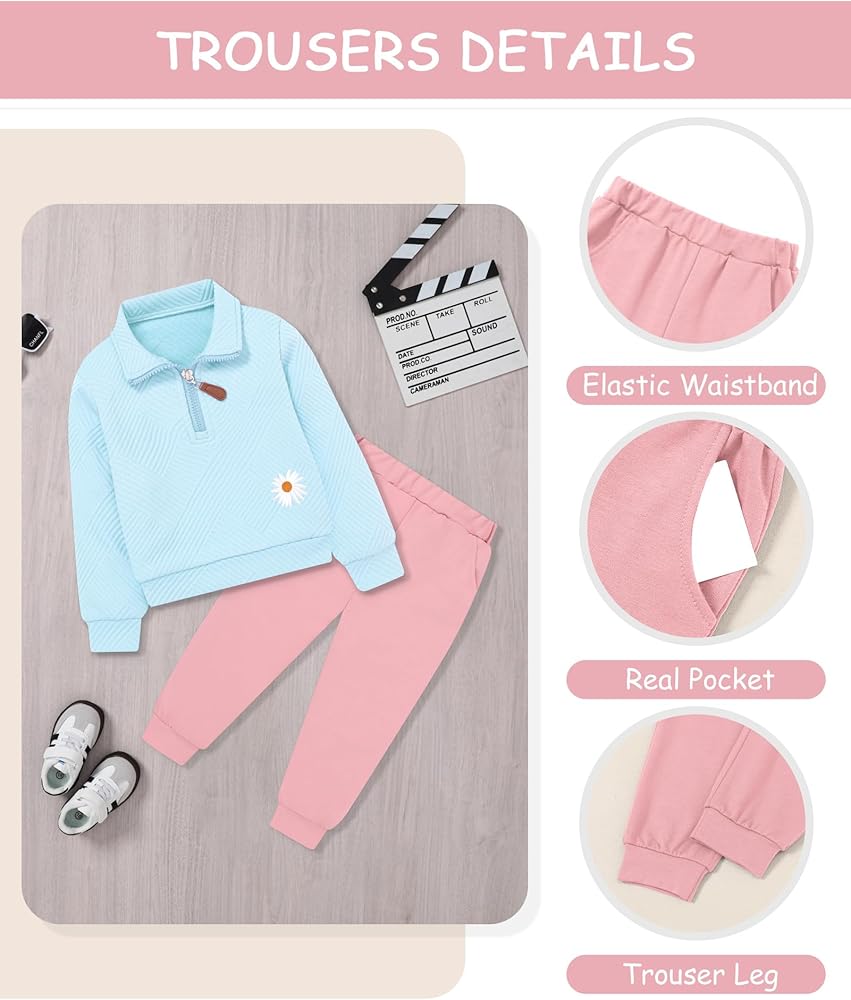【Stylish Design】The long sleeve zipper top paired with cute flowers adds a fun and trendy touch, while the solid color casual pants provide comfort, elastic waist pants for won't be fallen off easily, two pockets design easy carrying small items. The style will let the girl like it and enjoy dress it on how the feeling.