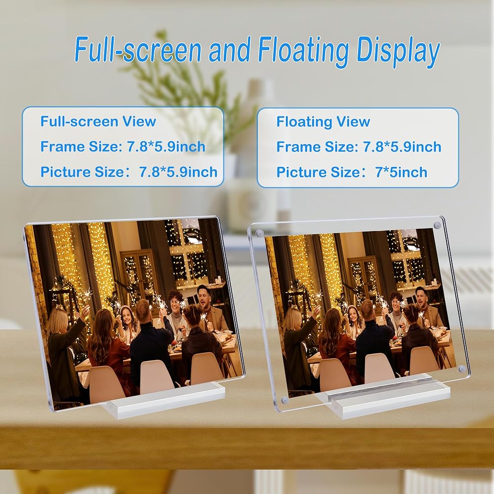 4 Pairs of Magnets and Stable Base: There are four powerful magnets built into the acrylic photo frame to firmly secure the photo. It comes with a base that elegantly and stably displays photos on the desktop