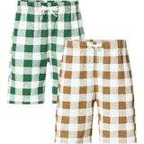 Made of Woven Cotton, no Stretch, suitable for warm weather or Summer. Elastic waistband with adjustable drawstring that allows for tossing, turning, and unrestricted rest.