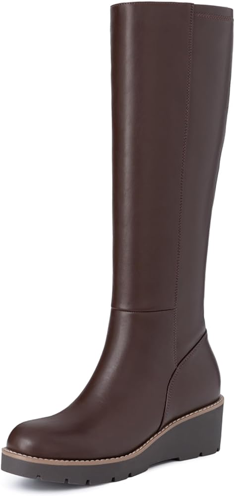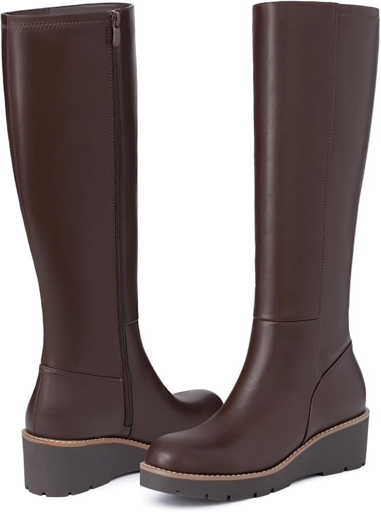Wedge Design: Featuring a heel height of approximately 2.17 inches, these wedge boots for women combine a classic round toe with a comfortable elevation. The wedge design offers superior stability and comfort for all-day wear.