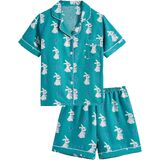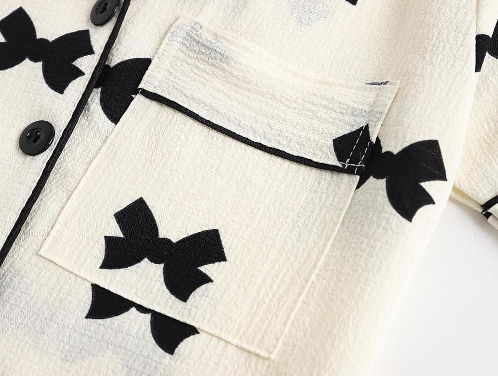 Design: Button down shirt, short sleeve, chest pocket, lapel collar, matching with a elastic waist shorts, elastic waistband, casual loose fit. This beautiful sleepwear set will make bedtime the most fashionable part of the day.