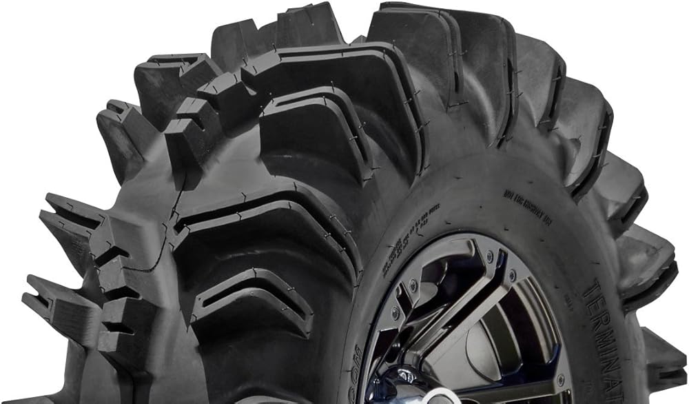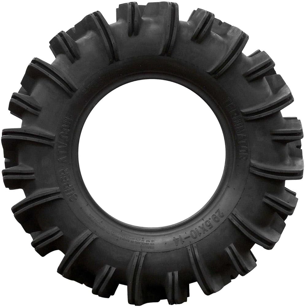 TERMINATOR TIRE SuperATV's Terminator is hands down the most aggressive mud tire on the market. The Terminator has the ability to take you where other tires can only dream of going. The Terminator's 6-Ply construction is designed for ultimate off-road performance, guarding against all the thorns and terrain you can put it through. With its angled tread design, the tire diverts mud away for improved grip and traction. Fitment: 28x10-12