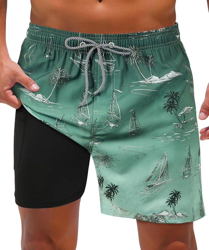 【2-in-1 Compression Liner】:The swim Trunks inner stretch lining is high-quality, skin-friendly, and far superior in feel to the old fishnet mesh liners. No need to wear extra underwear or worry about issues with chafing. which is 4 way stretch, lightweight and very soft.