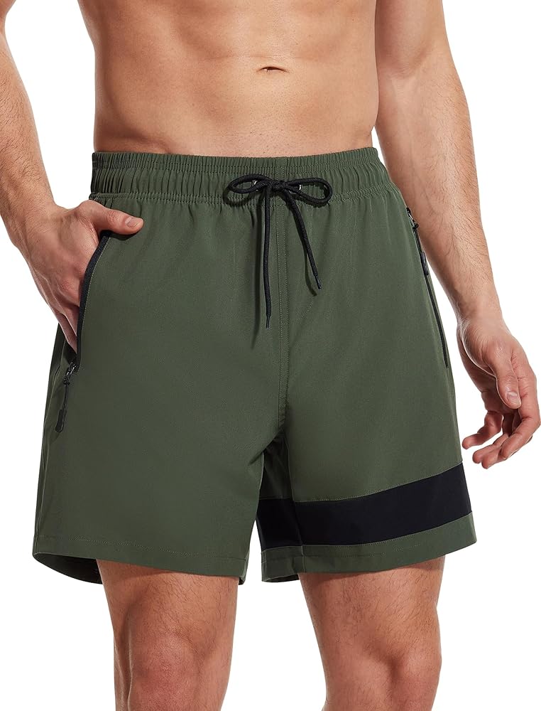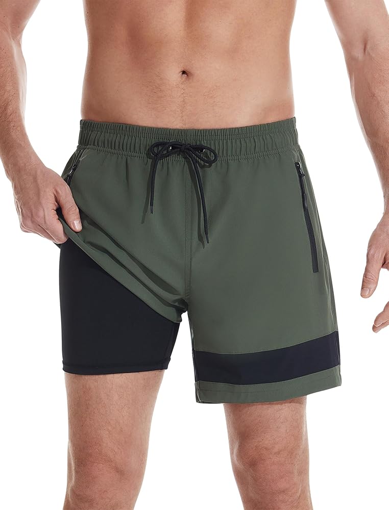 2 in 1 Swim Shorts : Mens beach short's built-in compression liner can reduce the friction between swimming trunk and skin. Four-way stretch fabric has good rebound resilience and can give you enough flexibility to exercise without being constrained