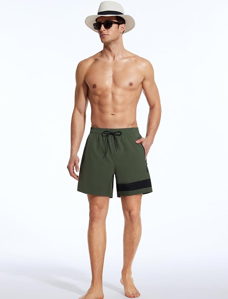 Quick Dry Swim Trunks: These swim trunks are made from quick-drying, soft, and breathable fabric, featuring a UV-protective outer layer that keeps you cool and fresh all day