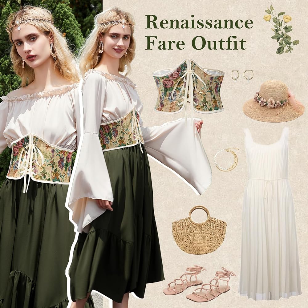 ⇒ Matching Method: Renaissance Costume Women,there are many ways to match the corset, which can be matched with skirts, shirts, jeans, etc., as a Renaissance dress style, it is also good, and there are many different ways to match.