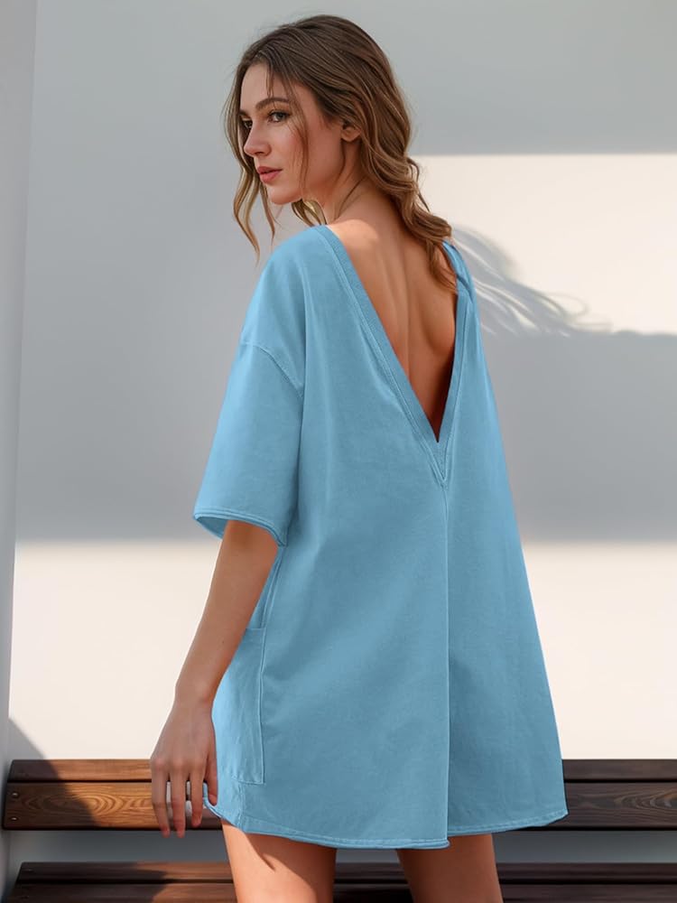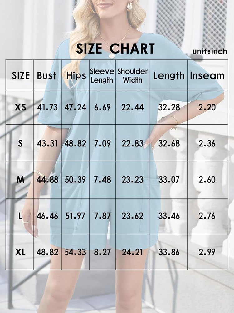 【Reversible Design】Equipped with pockets, the casual romper offers convenient storage for essentials like your phone. Moreover, this t-shirt romper is reversible, the round neck or deep V-neck as the front can be worn. And the deep V neck as the front side, can be paired with a tank top, showing your beautiful collarbone and perfect neck, which will make you stand out from the crowd.