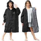 Hiturbo Waterproof Kids Swim Parka: Lightweight Windproof Swimming Surf Poncho - Hooded Swimmer Changing Jacket for 7-12 Yrs