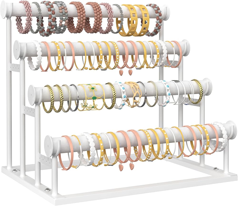 【Detachable Design】The jewelry display rack is detachable as a whole, easy to carry. The rack doesn't take up space, made 4 layers design, can store more bracelets, each layer can display at least 15-20 bracelets or bangles, it's the perfect desktop organizer.